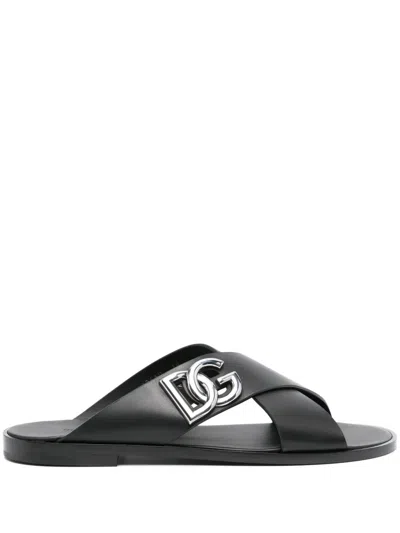 Black Sandals With Dg Logo Cut-out In Leather Man In Gray