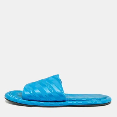 Pre-owned Blue Leather Izmir Flat Slide Sandals Size 43.5