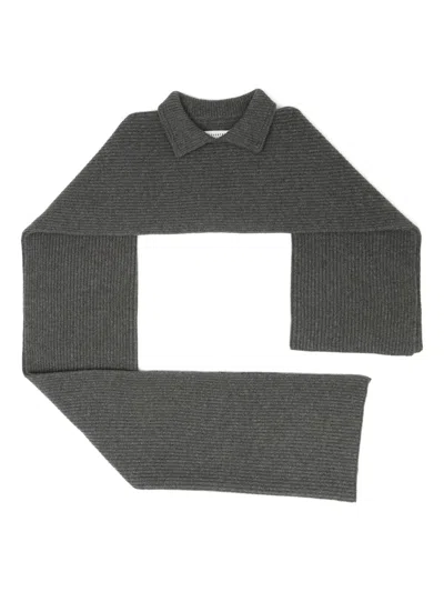 Collar Ribbed Scarf In Gray