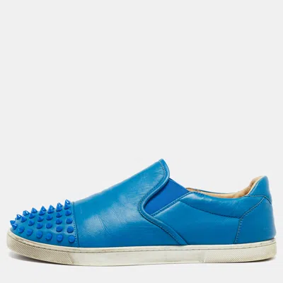 Pre-owned Blue Studded Suede Pik Boat Slip-on Sneakers Size 41