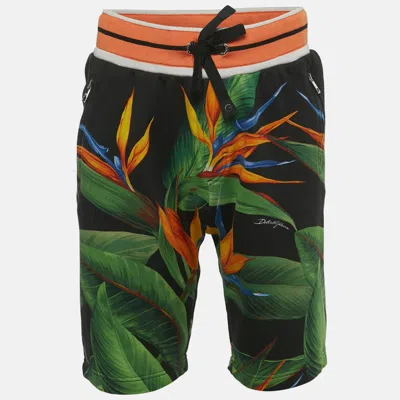 Pre-owned Black Tropical Print Cotton Knit Shorts M