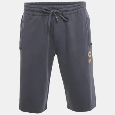 Pre-owned Cotton Knit Dg Embroidered Drawstring Shorts M In Black