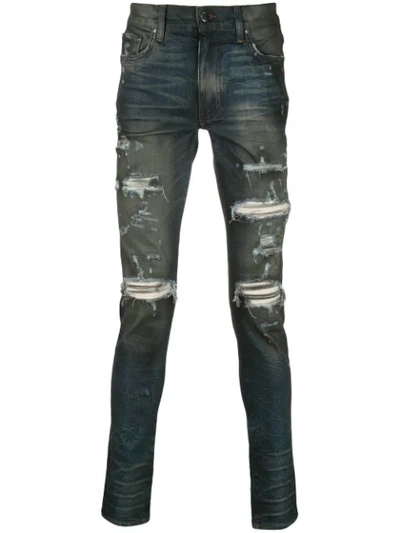Skinny Fit Dark Wash Denim Trousers In Blue