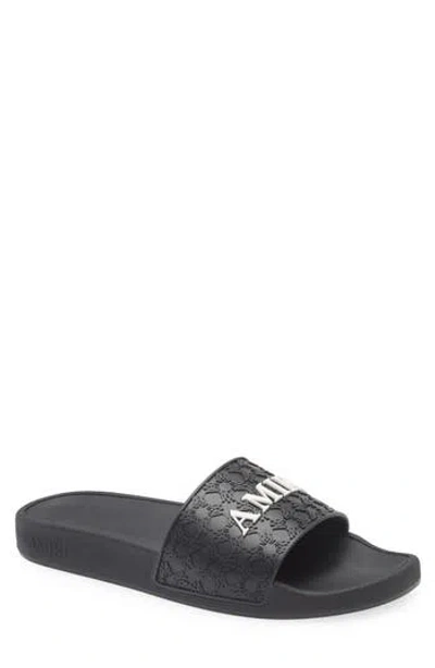 Monogram-embossed Leather Slides In Black