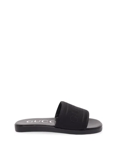 Jacquard Fabric Slides In Black