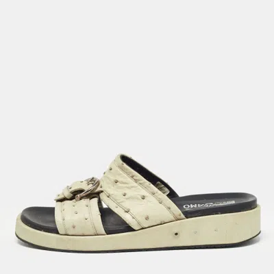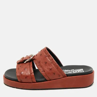 Pre-owned Brown Ostrich Lutfi Platform Slides Size 40.5