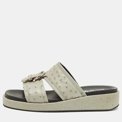 Pre-owned Grey Ostrich Lutfi Platform Slide Sandals Size 40.5 In Gray