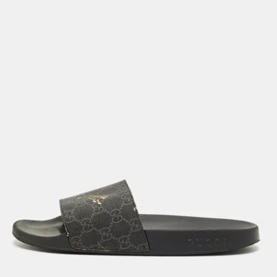 Pre-owned Black Gg Coated Canvas Pool Slide Size 42