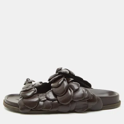 Pre-owned 03 Rose Edition Atelier Size 43 Dark Brown Leather Flat Slide Sandals