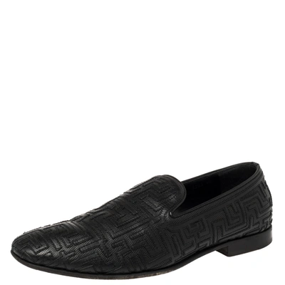 Pre-owned Black Snakeskin Embossed Leather Smoking Slippers Size 45