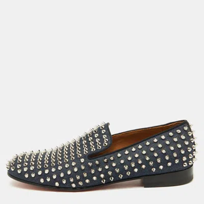 Pre-owned Navy Blue Fabric Dandelion Spikes Smoking Slippers Size 41