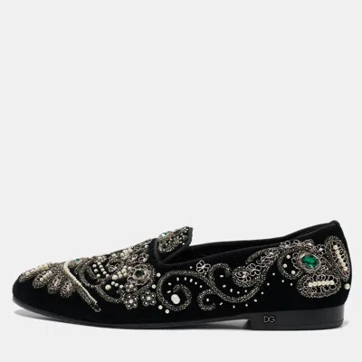 Pre-owned Black Velvet Embroidered And Embellished Smoking Slippers Size 42