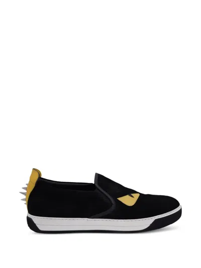 Pre-owned Black/white Hand Print Suede Crystal Embellished Smoking Slippers Size 41.5