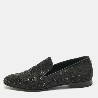 Pre-owned Black Crystal Embellished Suede Smoking Slippers Size 40