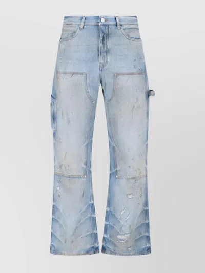 Straight Carpenter Style Trousers With Distressed Detailing In Blue