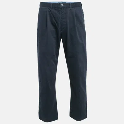 Pre-owned Navy Blue Cotton Blend Straight Fit Trousers 4xl