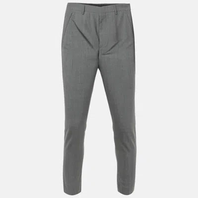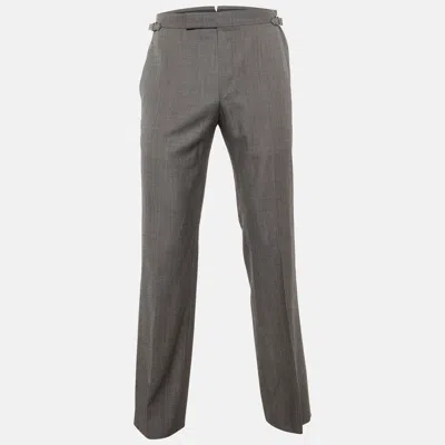 Pre-owned Grey Virgin Wool Straight Leg Trousers M