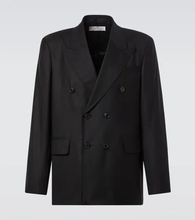 Double-breasted Wool Suit Set With Notched Lapels In Black