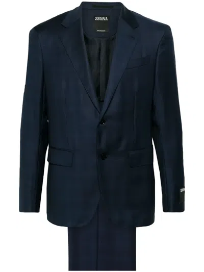 Checked Single-breasted Suit In Blue