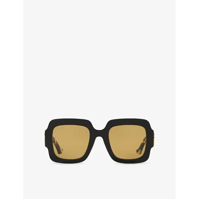 Womens Gg1547s Square-frame Acetate Sunglasses Black In Gold