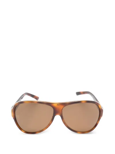 Pre-owned Logo-plaque Tortoiseshell-effect Sunglasses In Brown