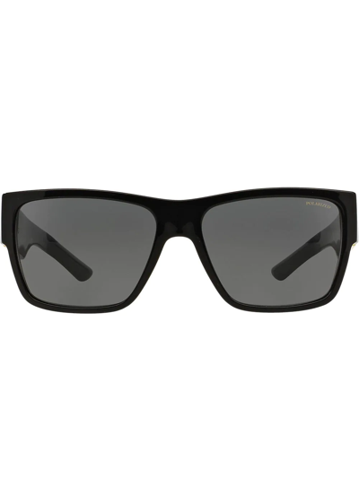 VERSACE EYEWEAR 装饰标牌方框太阳眼镜 - 黑色