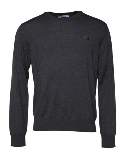 Dark Gray Dg Logo Crew Neck Pullover Sweater In Black