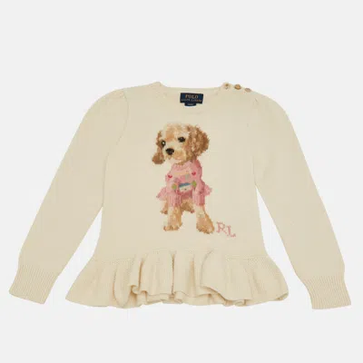 Pre-owned Ivory Dog Intarsia Wool Knit Sweater 4yrs In White