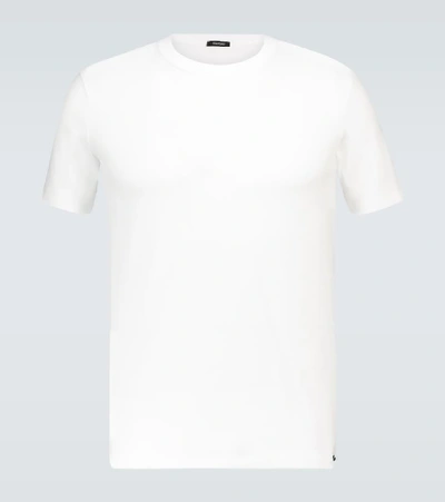 Ribbed Crew-neck Cotton T-shirt With Short Sleeves In White