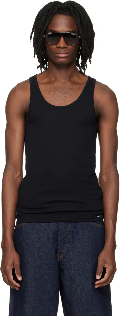 Mens Black Round-neck Rib-knit Wool Tank Top