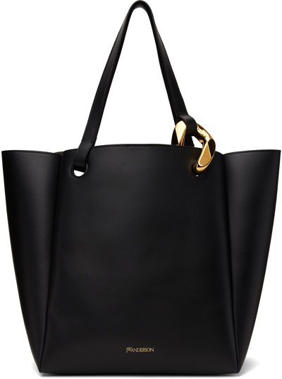 Chain Cabas Leather Tote In 999 Black