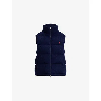Logo-embroidered Cable-knit Cotton Vest In Blue