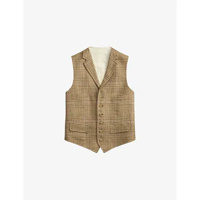 Mens Tan/brown Lavender Summer Tweed Checked Linen, Silk And Wool Vest