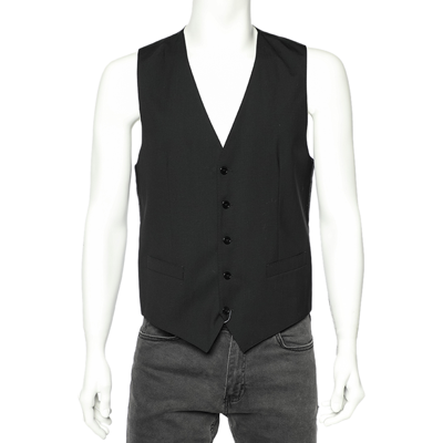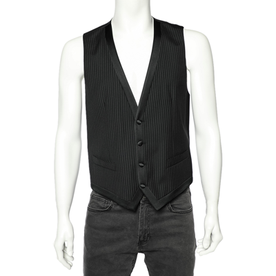 Pre-owned Grey Pinstriped Wool Vest L In Black