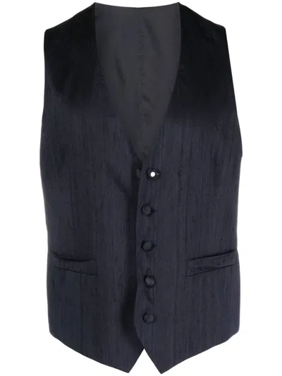 Blue Micropatterned Silk And Cashmere Waistcoat