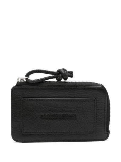Grained Leather Credit Card Case In Black