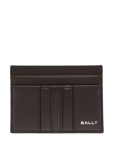 Textured Calfskin Leather Cardholder With Gold Embossed Logo In Black