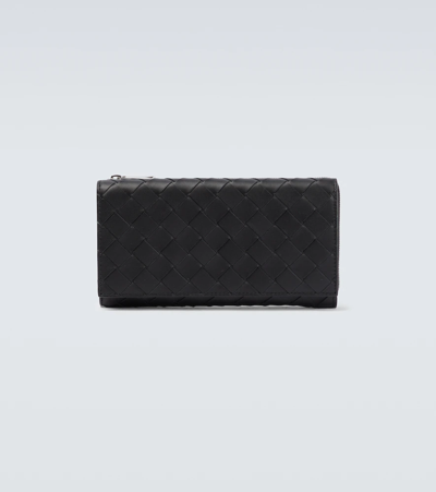 Intrecciato Medium Leather Bi-fold Wallet In Black