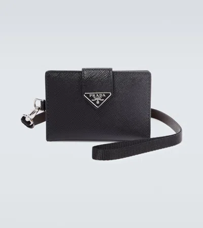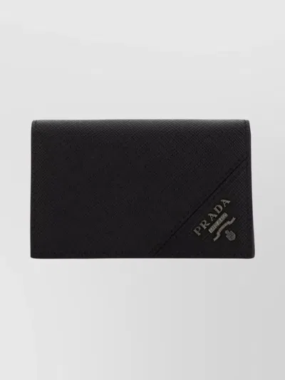 Card Holder In Saffiano Leather With Triangle Logo In Black