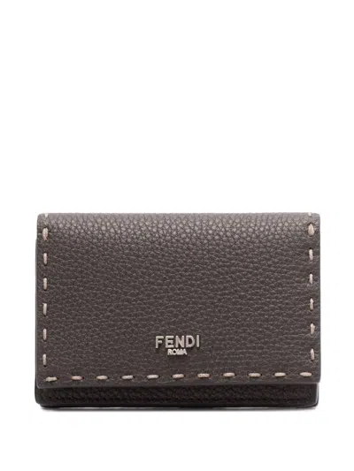 Textured Calf Leather Compact Wallet With Distinctive Stitches In Black