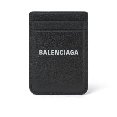 Men's Grained Calf Magnet Card Holder In Black