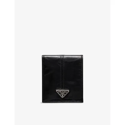 Black Card-wallet With Embossed Logo In Hammered Leather Man