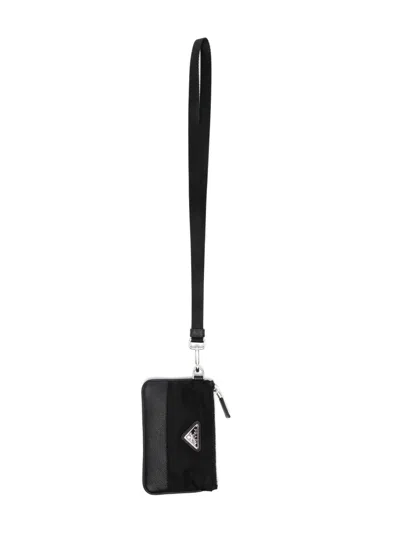 PRADA 十字纹牛皮LOGO钱包 - 黑色