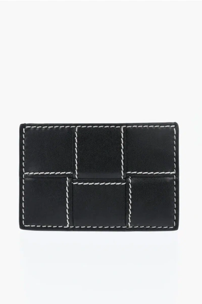 Green Intrecciato Piccolo Flap Card Holder In Black