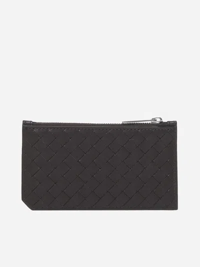 Intrecciato Piccolo Leather Zip Card Case In Fondant