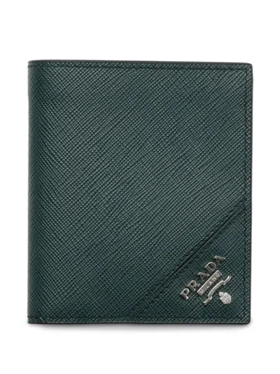 Mens Green Logo-plaque Saffiano Leather Wallet In Gray