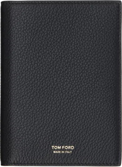 Double Sided Card Holder W/ Rwb Stripe In Pebble Grain Leather In Black