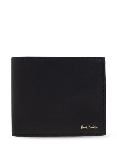 Crocodile Effect Bi Fold Leather Wallet In Black