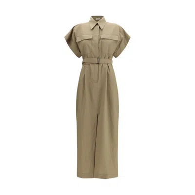 Pocket Belted Midi Dress In Brown