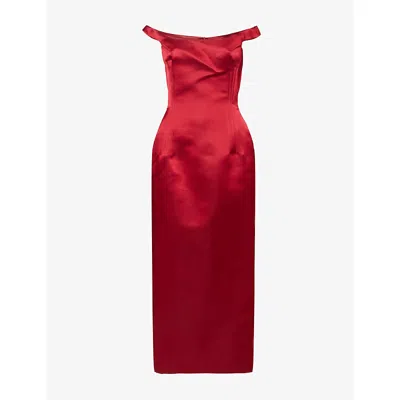 Womens Red Rebellion Tuck Shoulder-straps Linen Midi Dress Xs